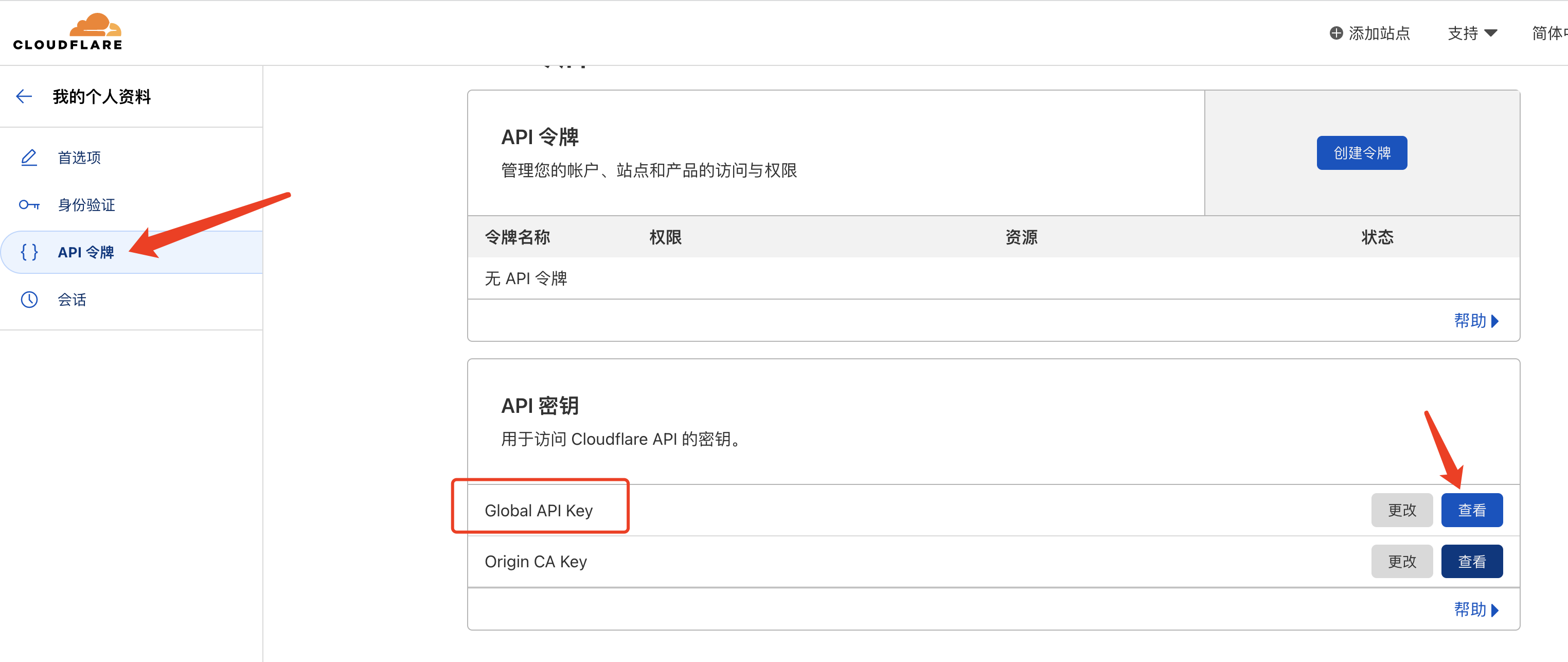 Cloudflare的api密钥,如下图(注意⚠️,ikuai必须使用全局的密钥)